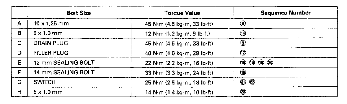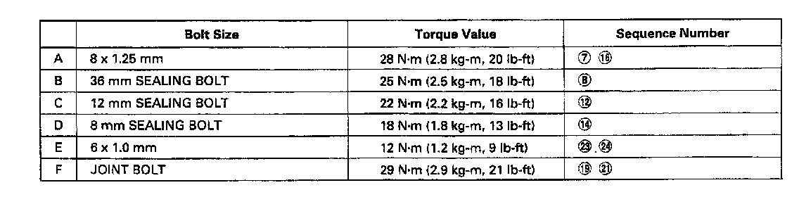 K4A6 5/6 Spd M/T, Flywheel Torque & Sequence: