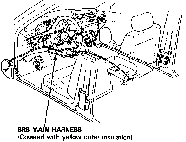 ^ Before disconnecting any part of the SRS wire harness, install the short connectors.