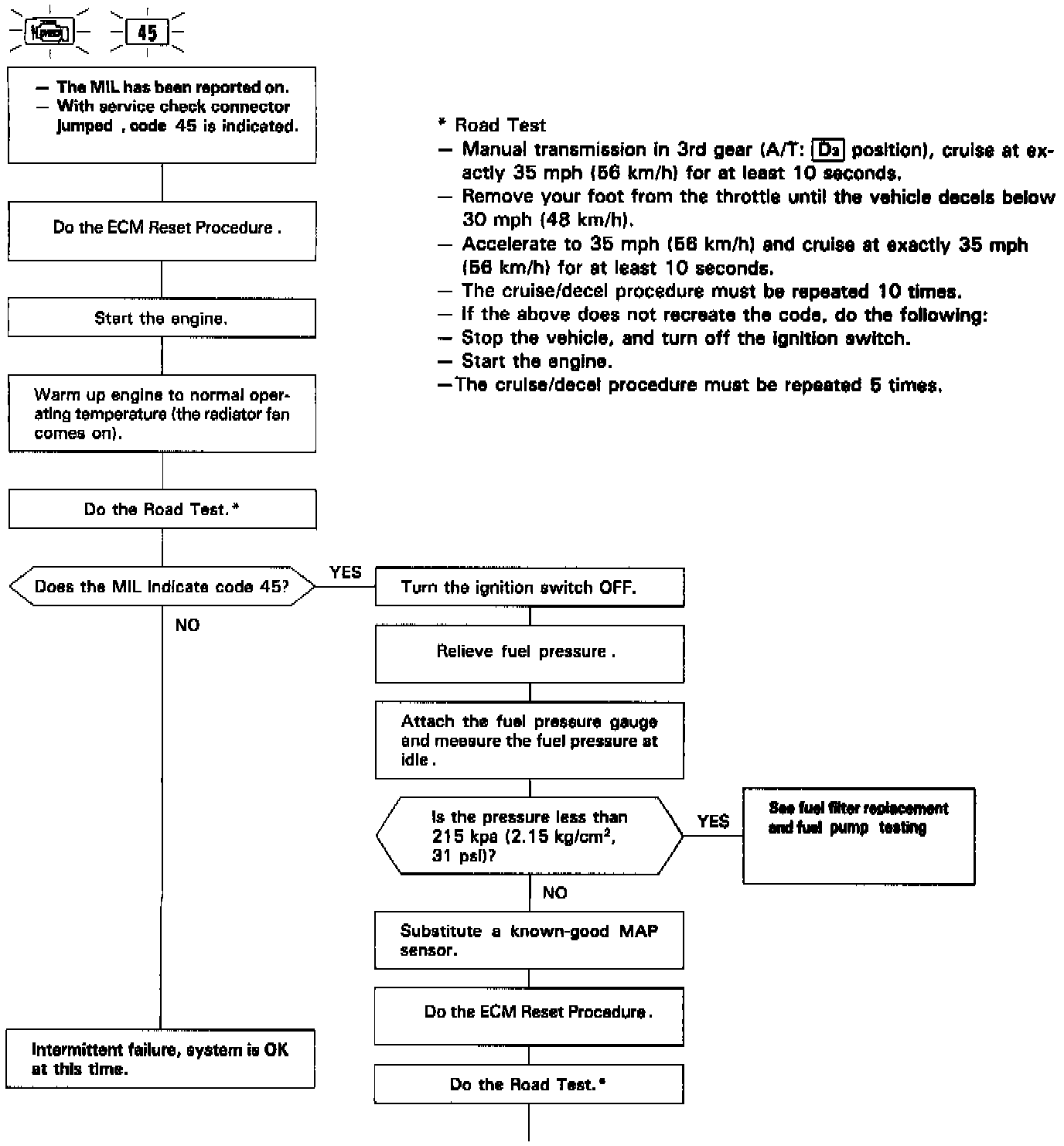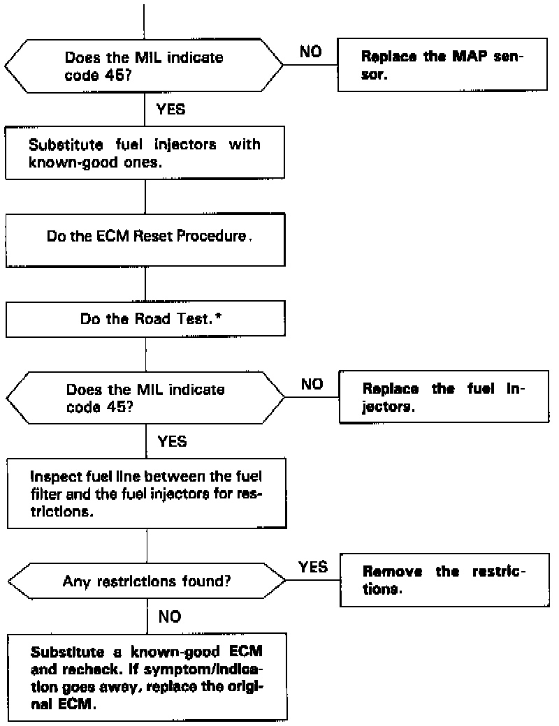 The Malfunction Indicator Lamp indicates Diagnostic Trouble Code 45: A problem in the Fuel Metering System.