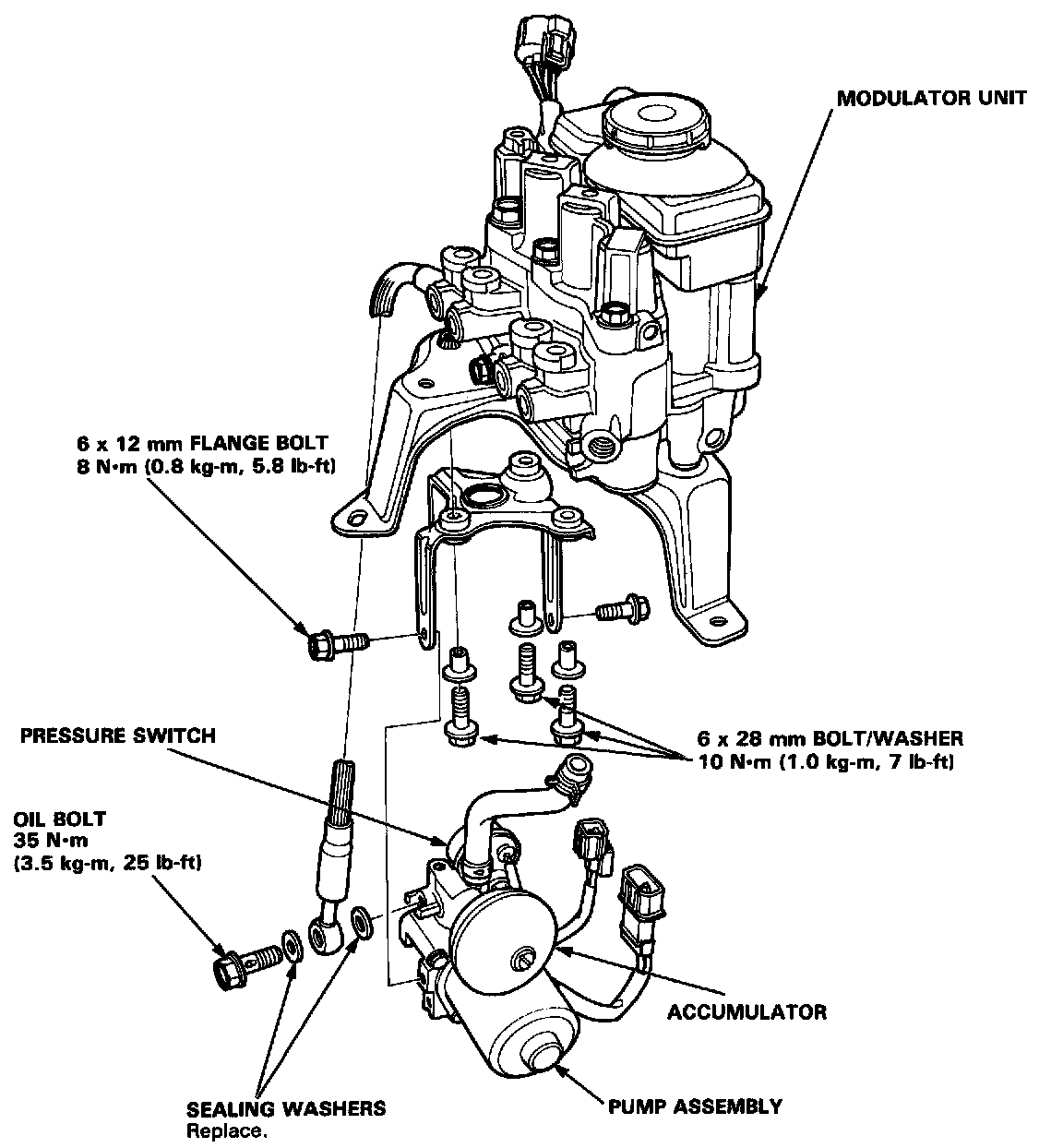 Before removing the modulator-to-pump high-pressure line, be sure to relieve the fluid pressure from the maintenance bleeder. Relieving Pressure