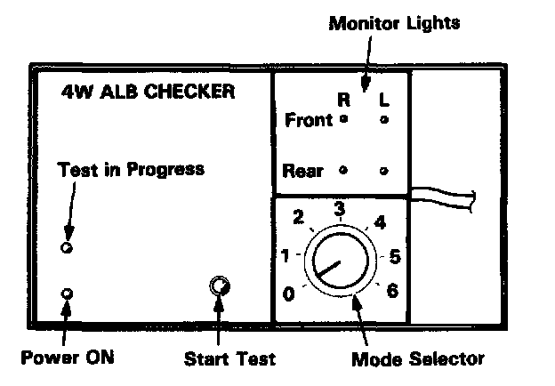 5. With the transmission in neutral, rotate each wheel briskly (one revolution per second) by hand, and confirm that its respective monitor light on the checker blinks as the wheel rotates.