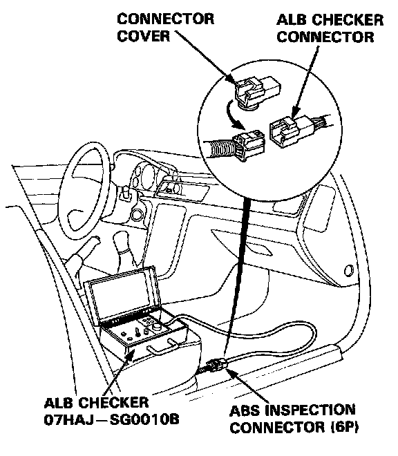 - Disconnect the ALB Checker before driving the car A collision can result from a reduction or complete loss of braking ability, causing severe personal injury or death.