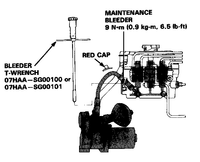 5. Bleed high-pressure fluid from the maintenance bleeder with the special tool.