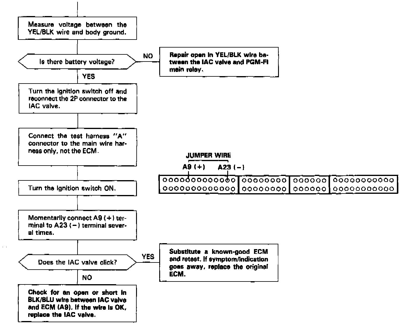 3. If the above items are normal, substitute a known-good idle air control valve and readjust the idle speed.