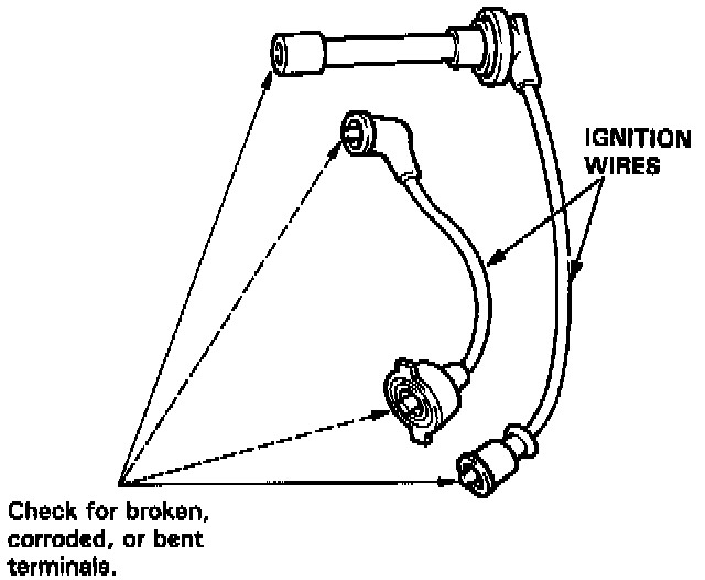 1. Check the condition of the ignition wire terminals. If any terminal is corroded, clean it, and if it is broken or distorted, replace the wire.