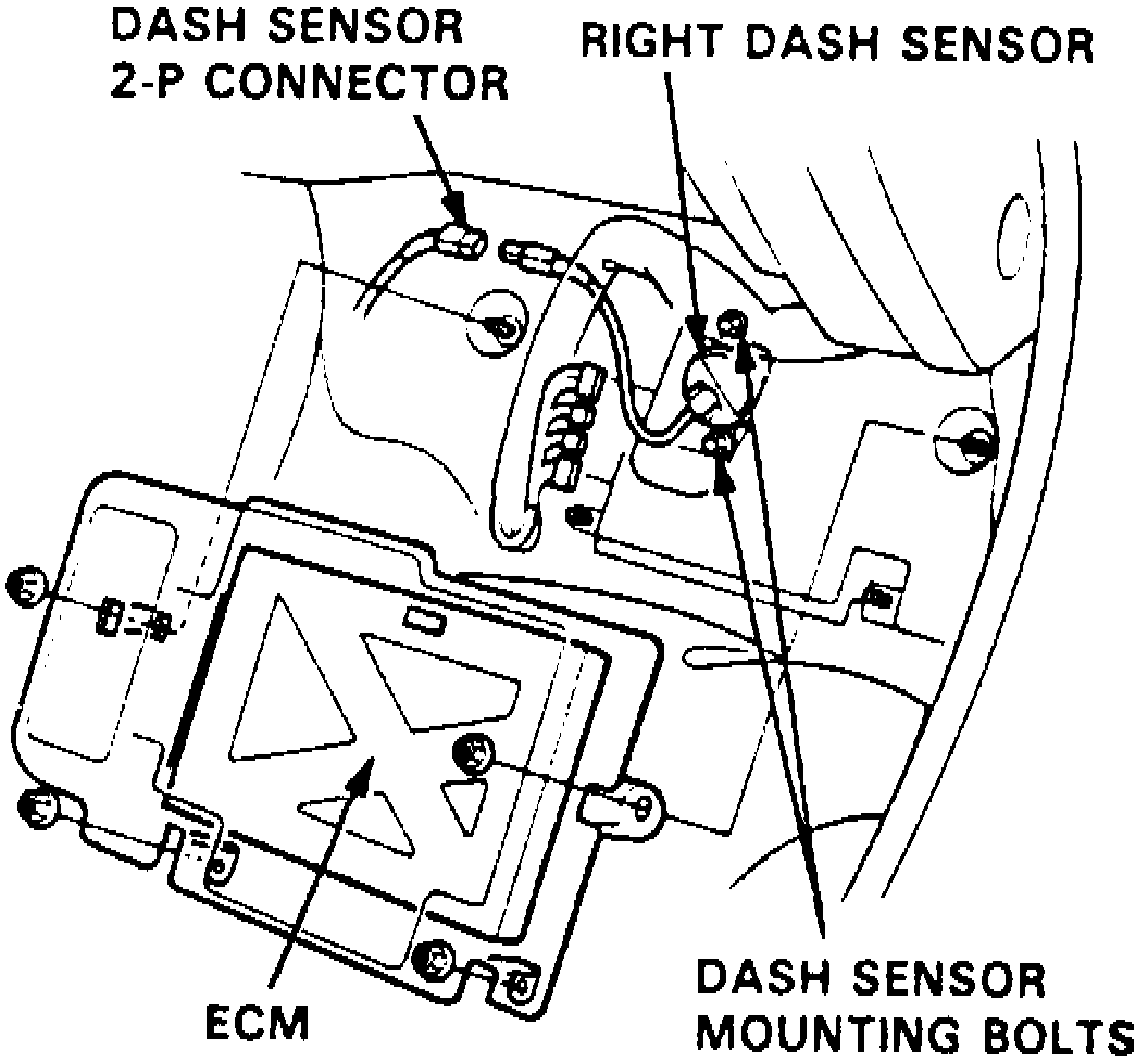 d. Disconnect electrical connector, then remove two dash sensor attaching bolts and dash sensor.