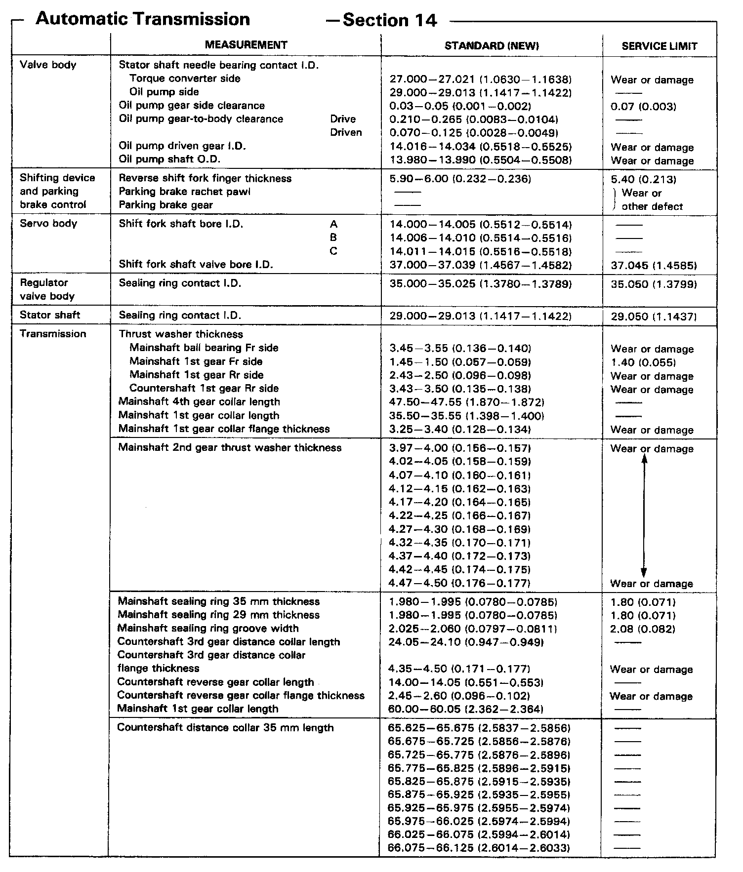 MPWA 4-spd A/T, Valve Body & Servo Body Transmission Thickness: