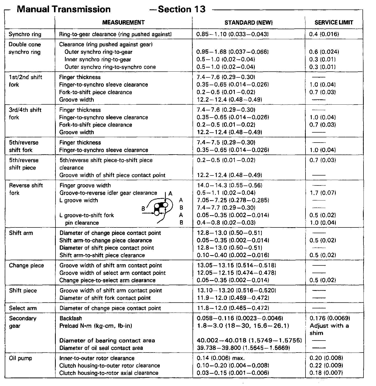 L3A3 5-spd M/T, Mainshaft & Countershaft Measurements: