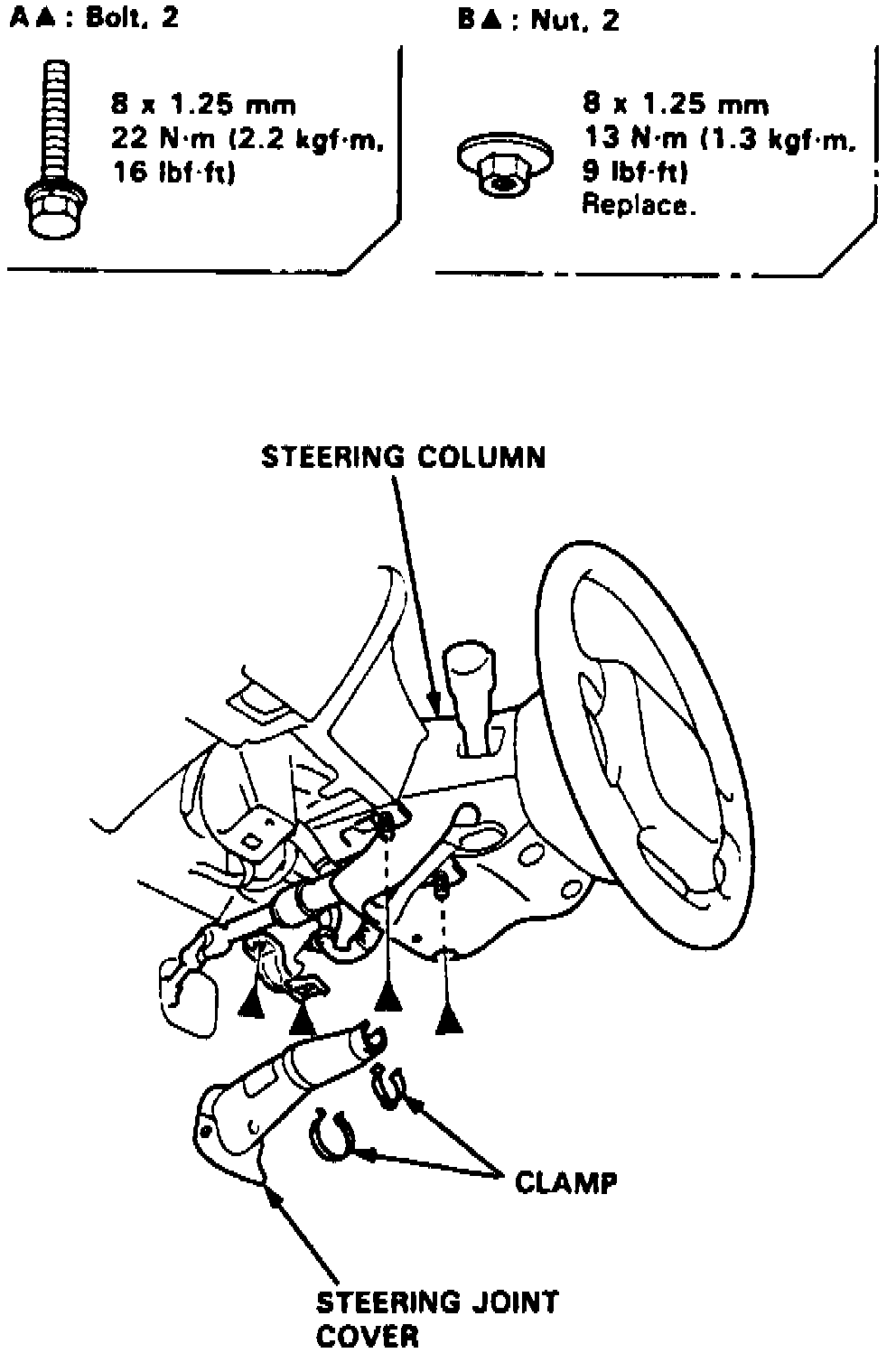 4. Remove moonroof switch, radio, steering column covers and support bolts, Fig. 6, then lower column carefully.