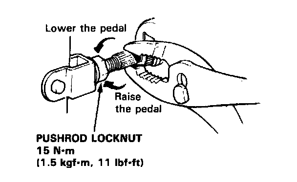 3. Loosen the pushrod locknut, and screw the pushrod in or out with pliers until the standard pedal height from the floor is reached. After adjustment, tighten the locknut firmly.