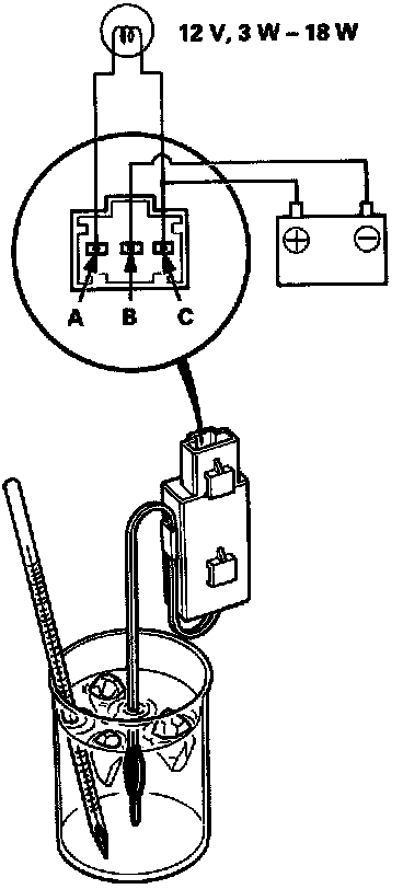 A/C Thermostat TestConnect battery power to terminal C and ground terminal B, and connect a test light between terminals A and C.
