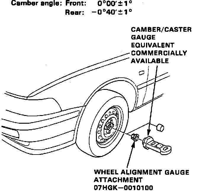Front and rear camber angles are not adjustable, however, the following procedures may be used to ensure camber is within specifications. Ensure tires are properly inflated prior to checking camber angles.