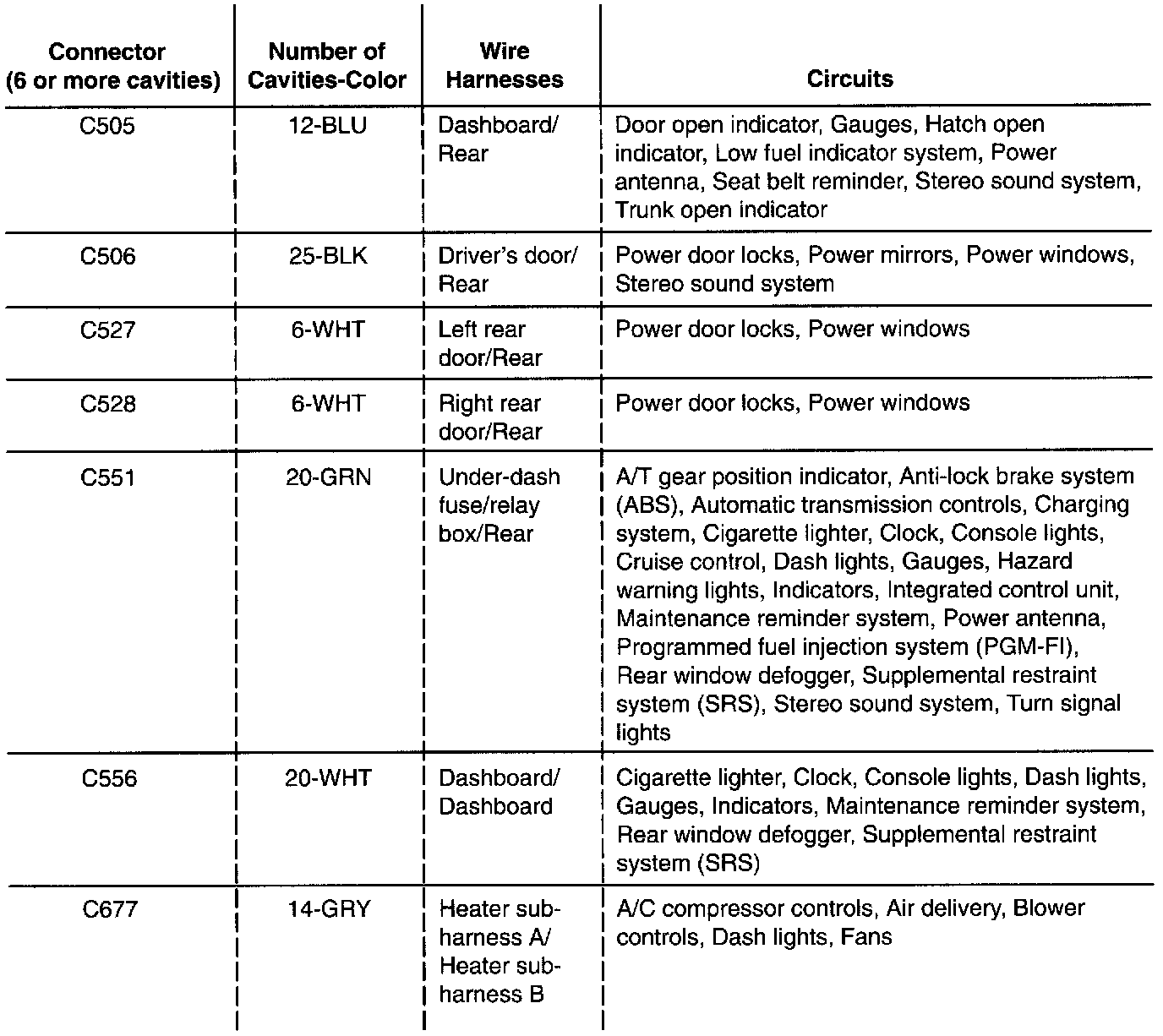 Circuit Identification For In-Line And Fuse Box Connectors: