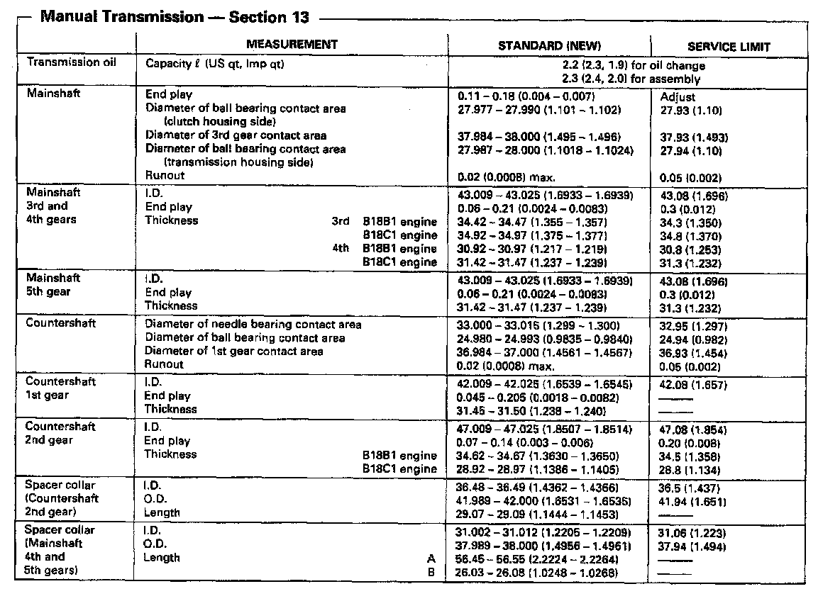 S80 5-spd M/T, Mainshaft/Countershaft Measurements: