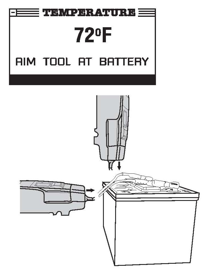 8. Measure the battery temperature by placing the analyzer's IR temperature sensor within 1 to 2 inches of the top or side of the battery. (The arrow on the top of the analyzer's housing indicates the sensor's location.) When the measured temperature on the display stabilizes, press Enter.