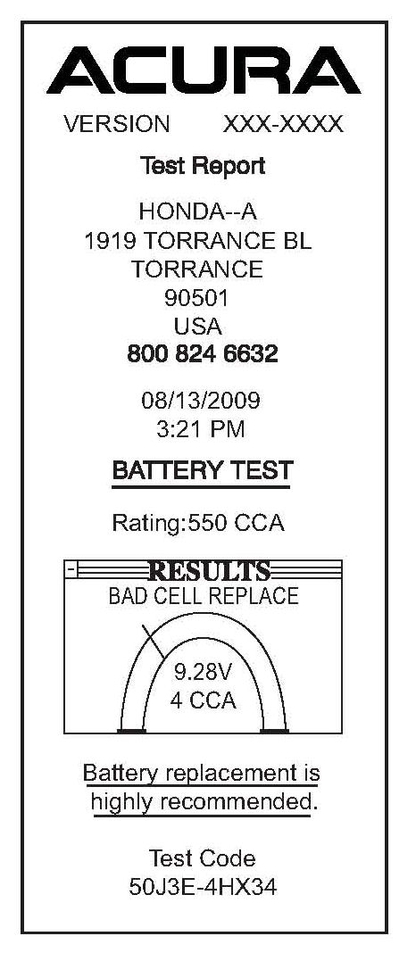 Keep a printout of every battery test. Your warranty claim may be rejected unless you show that the battery was properly maintained.