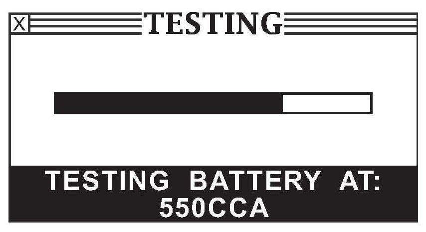 13. The tester displays the battery's current condition. The screen shows one of three possible battery conditions, the battery's measured voltage, and the CCA. The screen includes a curved, two-section bar graph that represents the battery's condition.