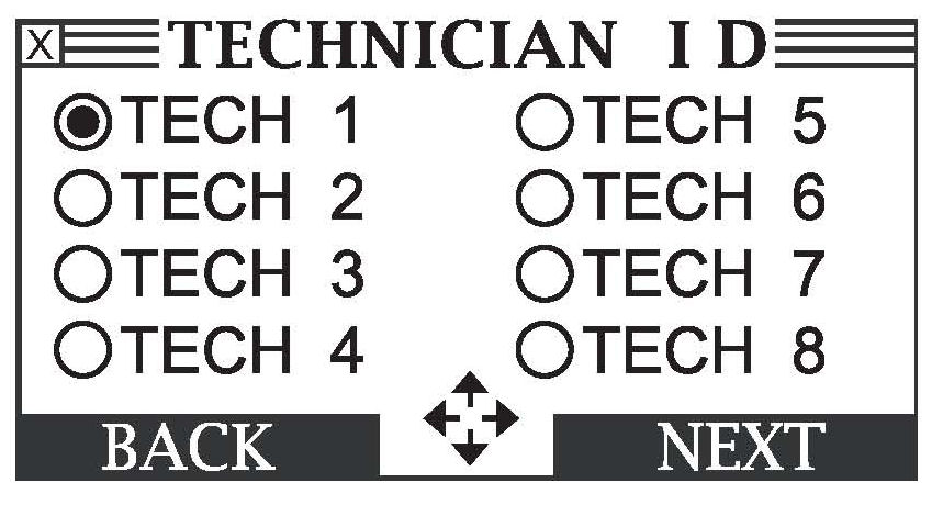 5. Select your TECHNICIAN ID, then press Enter. After the summary of your technician ID appears, press Enter again.