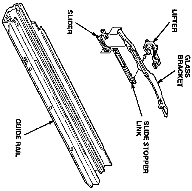 3. Thoroughly clean the guide rails, lifters, sliders, slide stopper links, and glass brackets in solvent. Flush them with brake cleaner, and dry them completely.