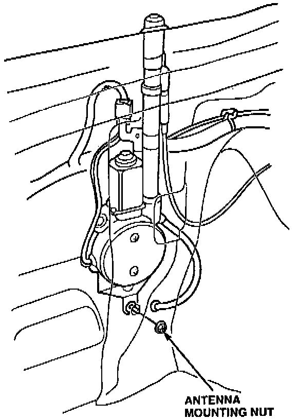 The Antenna Mast Kit includes the mast, an improved antenna nut (0-ring type), and an insulator that provides a seat for the 0-ring.1. Turn the ignition switch ON; then turn the radio on to extend the antenna mast.