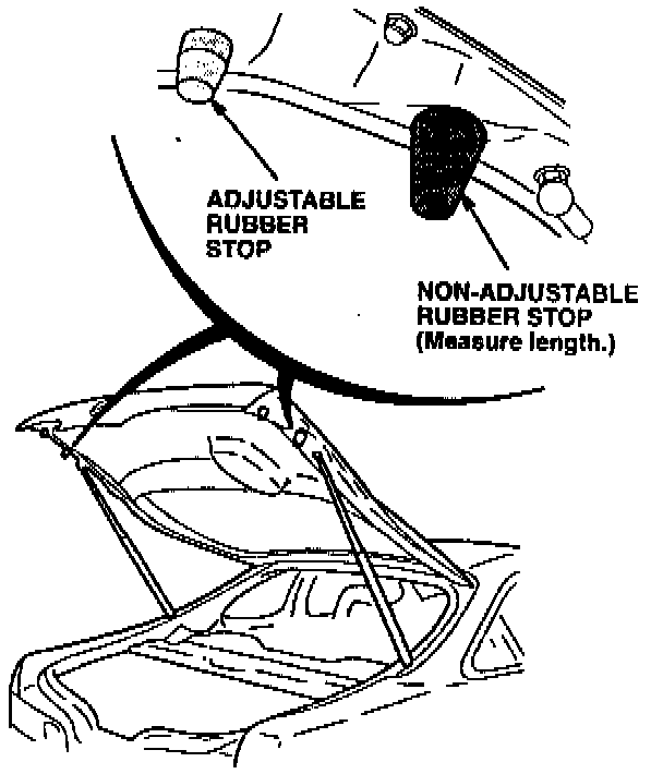 1. Groups B, C, D Only: Measure the length of the non-adjustable rubber stops on the hatch. If they are 28 mm long, replace them with the 24 mm rubber stops listed under PARTS INFORMATION.