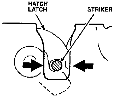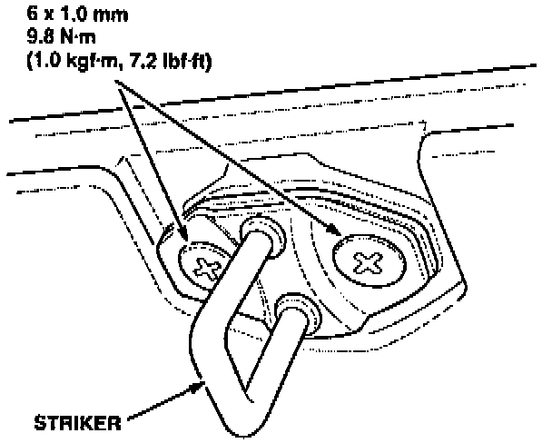 10. All Groups: Open the hatch and tighten the striker screws to 9.8 N-m (1.0 kg-m, 7.2 lb.ft). Remove the rubber spacer and save it.