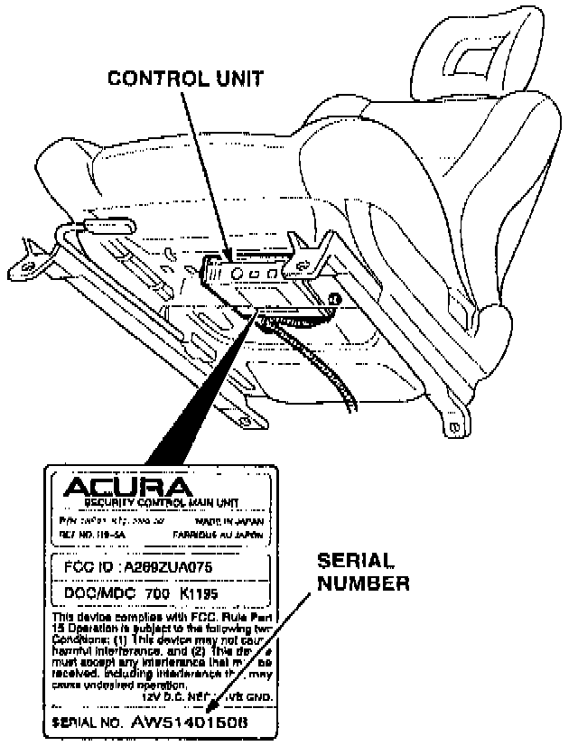 1. Check the serial number on the security system control unit. The control unit is mounted on the bottom of the driver's seat. You can check the serial number using a mirror.