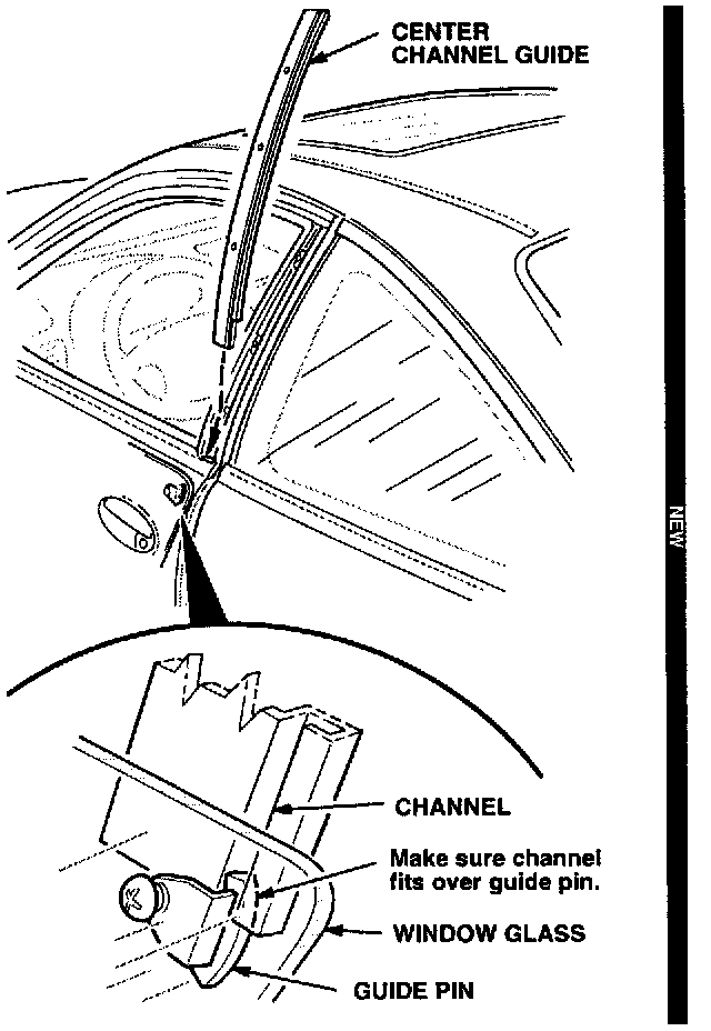 Too much clearance between the window guide pin and the center channel guide.