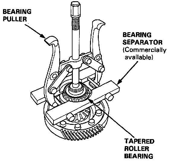 1. Remove the tapered roller bearings using a bearing puller and bearing separator as shown.