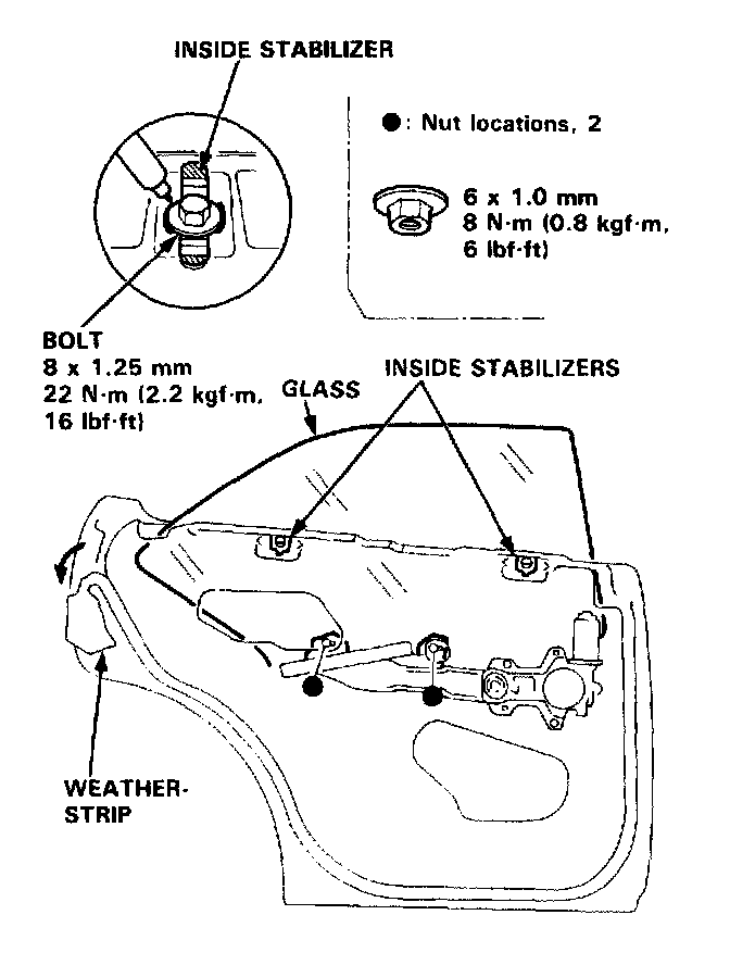 12. Roll the glass up and down to see if it moves freely without binding. Also make sure that there is no clearance between the glass and weatherstrip when the glass is closed. Adjust the position of the glass as necessary.