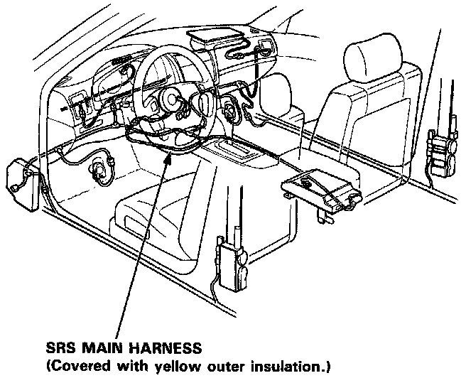 - All SRS wiring harnesses are covered with yellow outer insulation.
