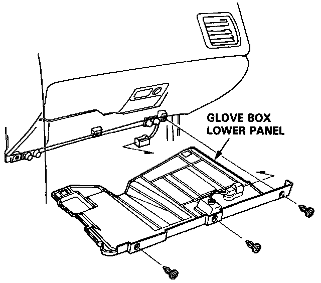 2. Disconnect the glove box light connector and glove box mounting bolts, then remove the glove box.