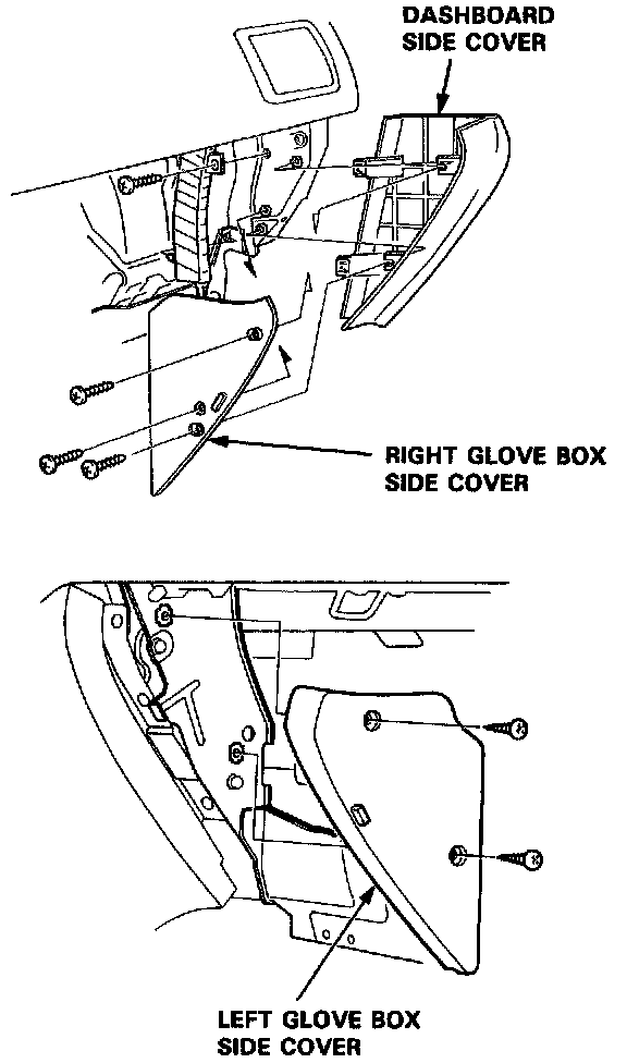 3. Remove the right glove box side cover, the dashboard side cover and the left glove box side cover.