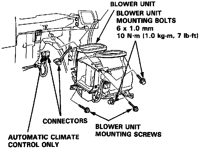 6. Remove the blower unit mounting bolts and screws, then remove the blower unit.
