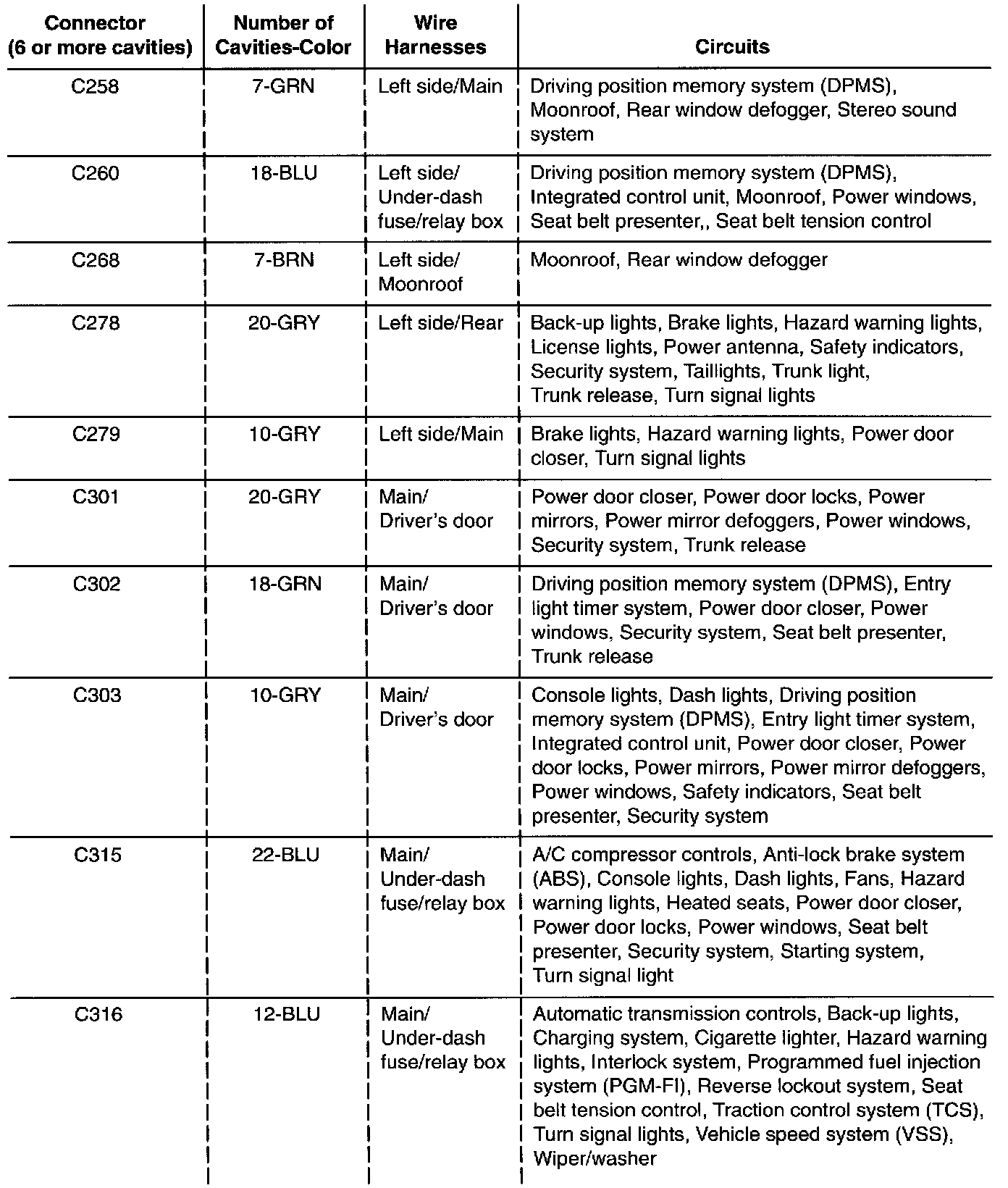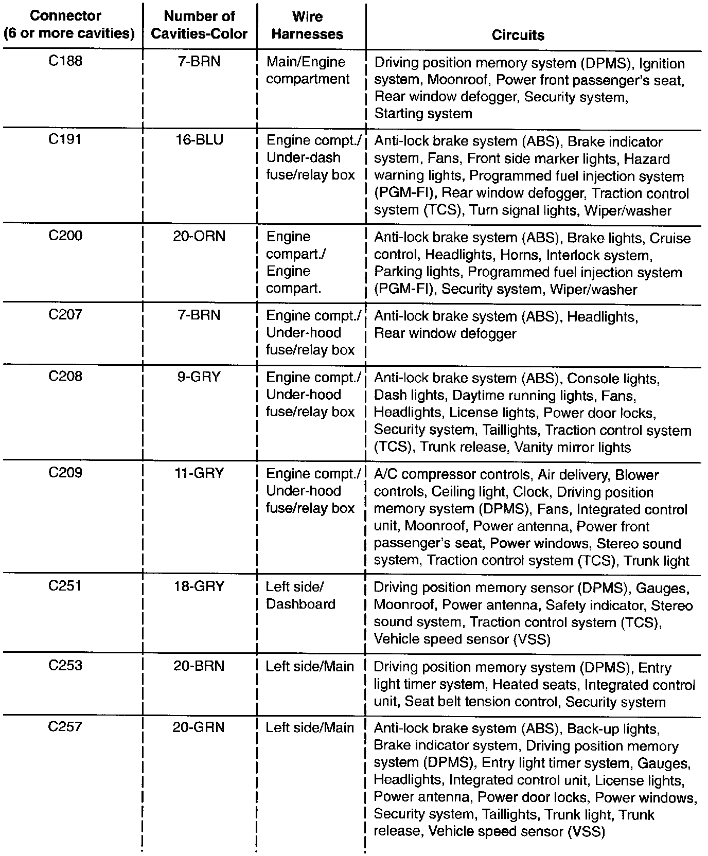 Circuit Identification For In-Line And Fuse Box Connectors (part 2 Of 6):
