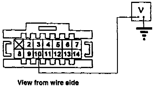 7. Make sure the phone is still ON. Then backprobe the 14-P control box connector at terminal 10 and measure voltage to ground while you press the Mode button several times.