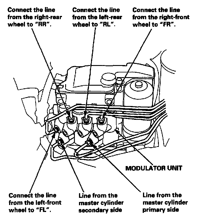 7. Bleed air from the brake system. Modulator Unit Bleeding (ABS)