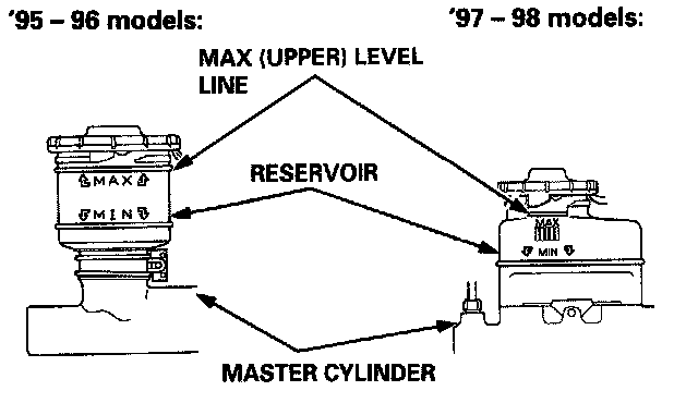 1. Make sure the brake fluid level in the reservoir is at the MAX (upper) level line.