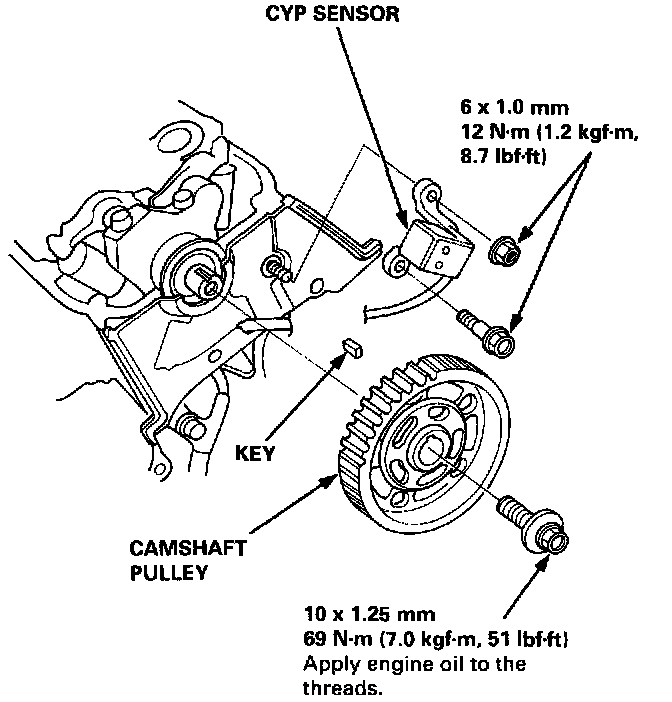 3. Remove the Cylinder Position (CYP) sensor, then remove the camshaft pulley.