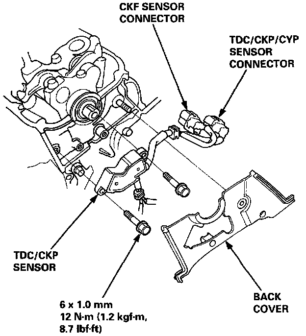 6. Remove the back cover, then remove the TDC/CKP sensor.