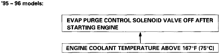 EVAP control canister purging is accomplished by drawing fresh air through the EVAP control canister and into a port on the throttle body. The purging vacuum is controlled by the EVAP purge control solenoid valve.