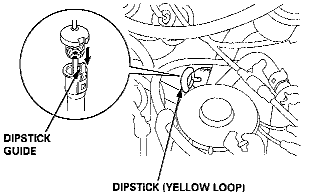 2. Remove the dipstick (yellow loop) from the transmission, and wipe it with a clean cloth.