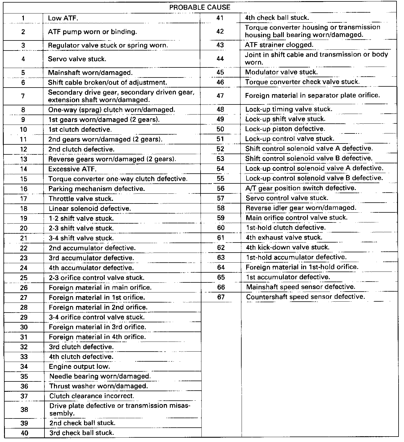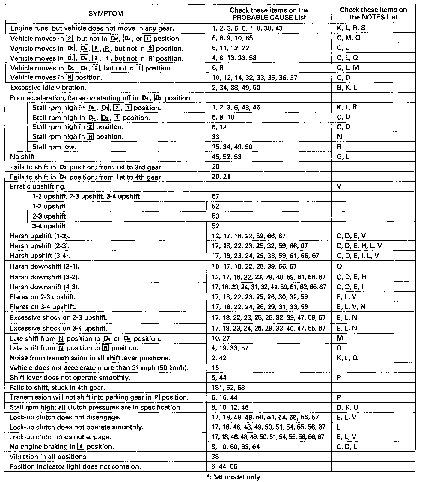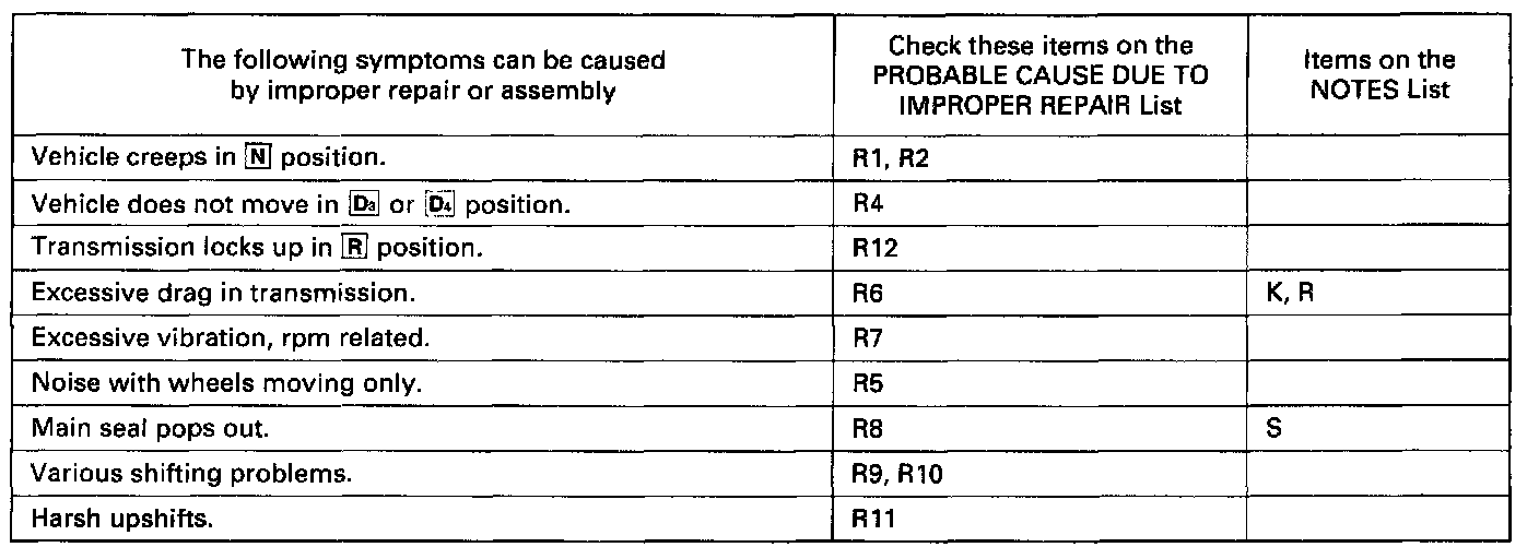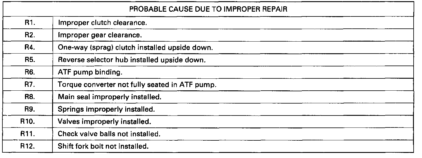 Symptoms to Probable Cause Chart