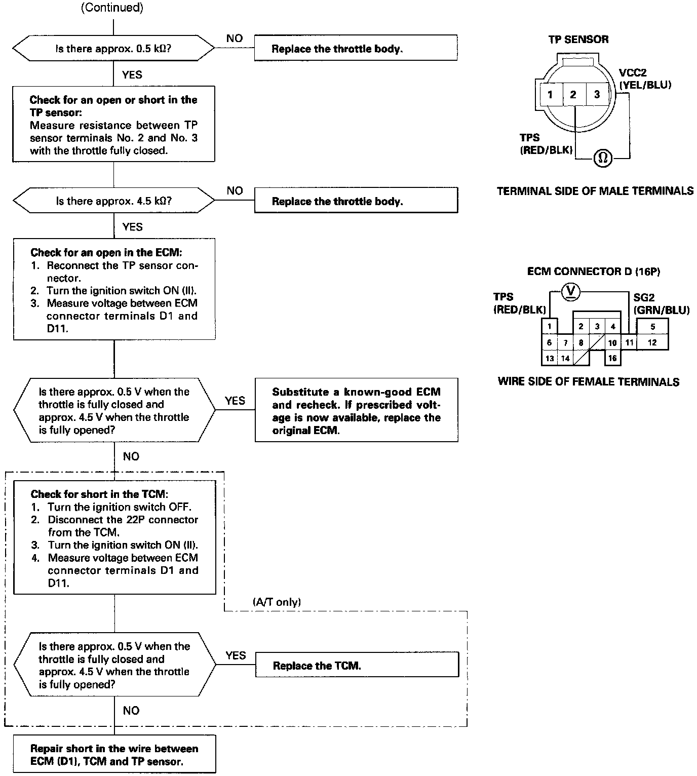 The TP Sensor is a potentiometer. It is connected to the throttle valve shaft. As the throttle position changes, the throttle position sensor varies the voltage signal to the ECM.