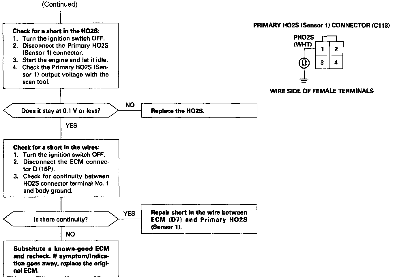 The Heated Oxygen Sensor (HO2S) detects the oxygen content in the exhaust gas and signals the ECM. In operation, the ECM receives the signals from the sensor and varies the duration during which fuel is injected. To stabilize the sensor's output, the sensor has an internal heater and the sensor element is coated with a catalyst. The HO2S is installed in TWC housing (B18C1 engine) or exhaust pipe B (B18B1 engine).