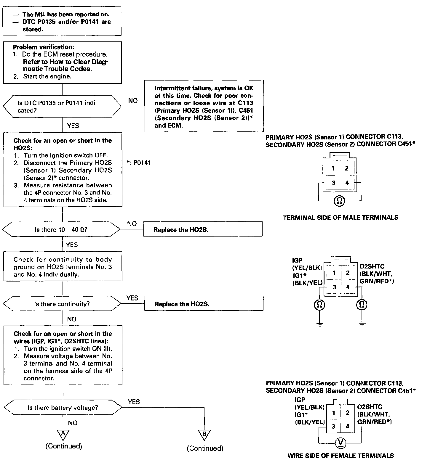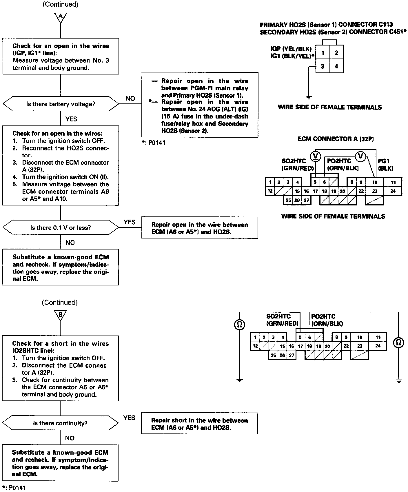 The scan tool indicates Diagnostic Trouble Code (DTC) P0141: A problem in the Secondary Heated Oxygen Sensor (HO2S) (Sensor 2) Heater circuit.