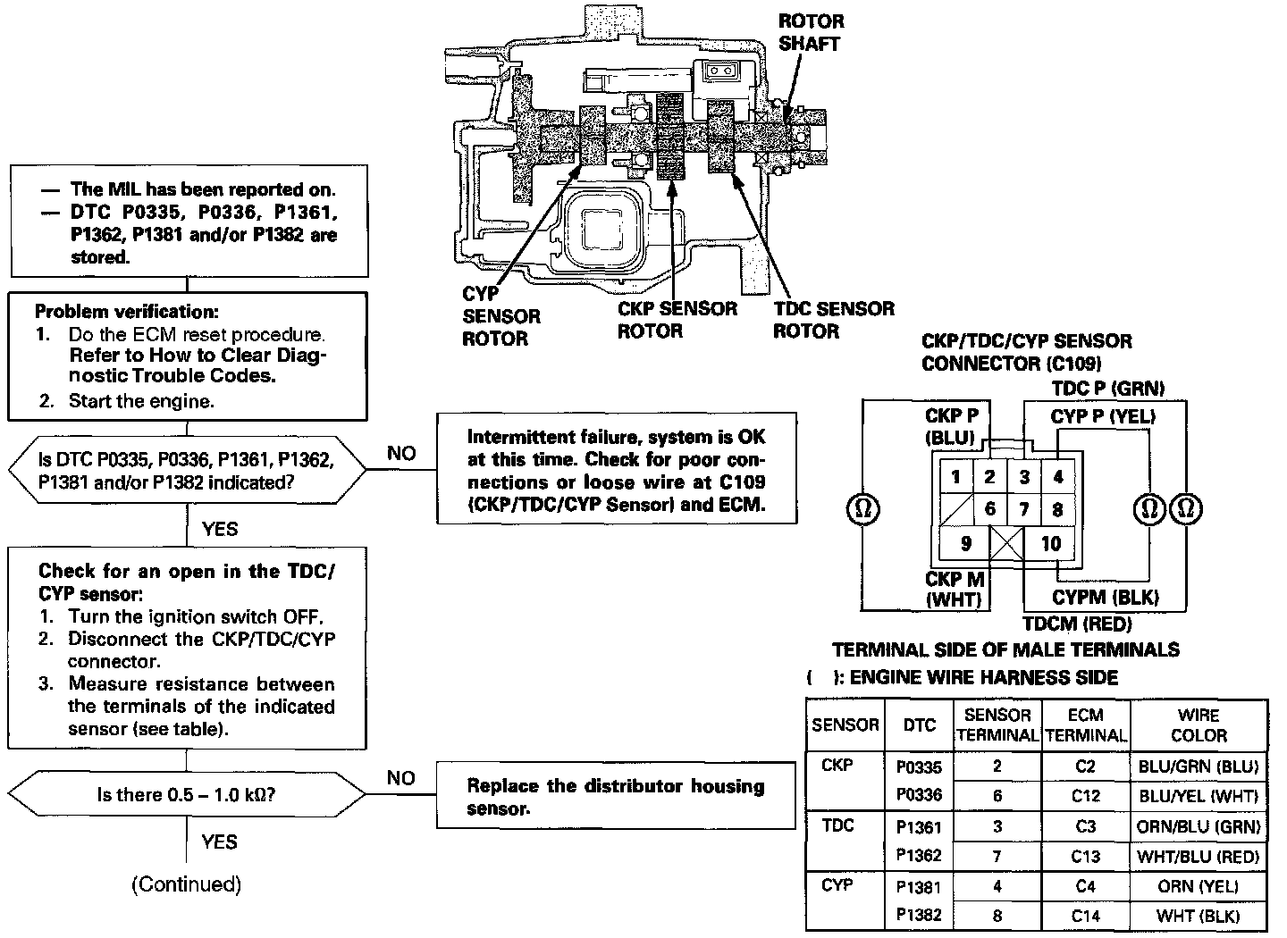 - If DTC P1359 is stored at the same time as DTC P0335, P0336, P1361, P1362, P1381 and/or P1382, troubleshoot DTC's.