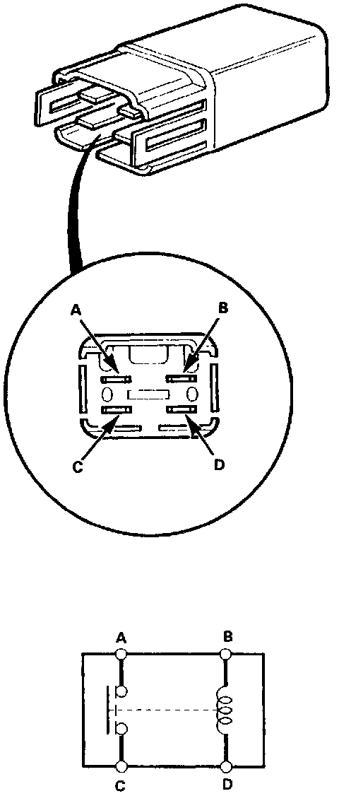 There should be continuity between the A and C terminals when power and ground are connected to the B and D terminals, and there should be no continuity when power is disconnected.