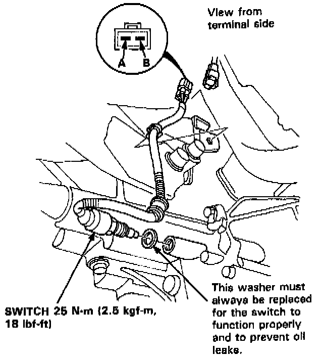 4. With the shift lever in reverse, check for continuity between the A and B terminals with the switch installed.