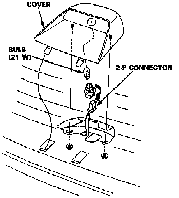 1. Open the trunk lid, and disconnect the 2-P connector from the high mount brake light.
